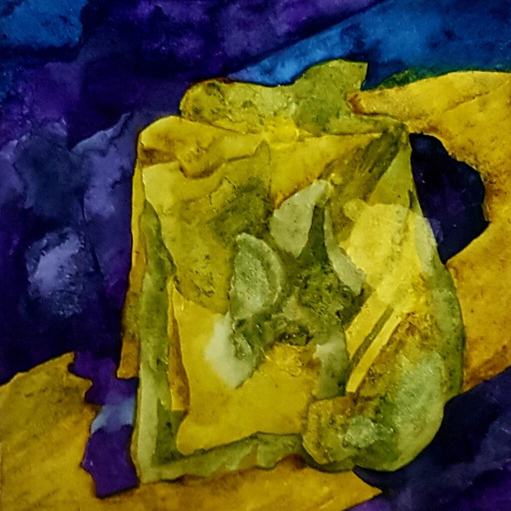 Durch puren Zufall, (wenn es so etwas geben sollte), ist dieser Schnitz einer raren Apfelsorte auf dem Titelbild der neuen ‚Zeit‘ gelandet, und wer will leugnen, dass zuweilen die seltsamsten Dinge miteinander korrespondieren. Und so wurde dadurch die wesentliche Frage frei, nämlich: hält er das durch? Hält Putin das durch, dass er für sein vor sich hinalterndes Ego in gnadenloser Zwerghaftigkeit noch mehr Land haben muss, und vor allem ein Gesicht für den Spiegel. Wie halten sie das durch, diese Männer, ich kann es mir nur schwer vorstellen. Wir treffen hier auf die Grenze der Vorstellungskraft. Man will sich nicht alles vorstellen müssen, und anderes ist unvorstellbar. Die Erkundung der Dunkelheit(en) ist nicht jedermanns Sache, jedoch der Forschungsdrang kann nicht schaden. Aber wann und wodurch lenke ich mein eigenes Potential in die eine oder die andere Richtung, und ab wann spiele ich einfach mit in der Hölle, als wär’s ein Pizzaladen, also was ganz Normales. Und gerade diese scheinbar verborgenen Entscheidungen, von denen kein andrer was weiß, die schaufeln doch gleichzeitig den Sand des Pfades nach vorne, und im schlimmsten Fall wird es aussichtslos. Niemand weiß, wer das Spiel entscheidet, irgendwann gibt es keine Schiedsrichter mehr. Und wer aus diesem Spiel a u c h noch aussteigen will, muss, gemäß den Bedingungen, die illusorische Oberfläche des starren Bildes durchdringen, und auch da kann dann die Frage durchaus relevant werden: wie hält er (oder sie) das durch?