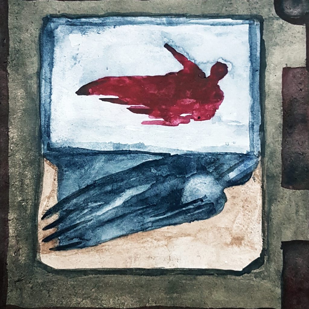 Wir waren gestern bei der Ausstellungseröffnung einer kosovarischen Künstler:innengruppe, und dieses Bild oben gefiel mir wegen seiner präzisen Buchstabensetzung auf lebendigem Schwarz, und ja, der schwarze Spiegel, aus dem der Tod lugt. Aber klar, auch während des eigenen Lebendigseins stirbt außen und innen so einiges, geht einfach dahin. Neue Impulse werden generiert und prallen zusammen und formen neue Muster und neue Gesellschaften. Die Übergänge sind oft schmerzhaft. Tief sind die Wunden des unfreiwilligen Verstehens, und wenn wir dann mit dem Unvorstellbaren umgehen müssen, kommt es für jedes lebendige Wesen auf sehr viel an. Ob die geistige Nacht noch dunkler werden kann, oder gar schwärzer? Oder hat’s schon ins Schwarze getroffen, und wir hielten es für aushaltbar. Die Häuser voll von getriebenen Menschen, die keinen Ausweg mehr sehen? Aber es gibt ihn, das muss man unbedingt wissen. Man sollte sich wegen der Dunkelheit des Spiegels vom Sehen nicht abhalten lassen. Der Lufthauch des Dahinter ist ja schon spürbar. Jetzt habe ich fast vergessen zu erzählen, dass nämlich in dem obigen Bild von Artin Ymeri kein Lichtstrahl angelegt war, der kam dazu über die Reklektion des Glases. Dafür hat sich m.E. der Kunstgriff selbst eingeschaltet und hat einen Nu der lebendigen Fusion festgehalten, in dem das scheinbar undurchdringliche Dunkel belichtet wird.
