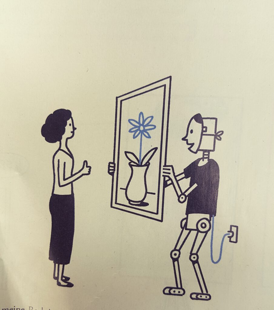 Man kommt ja, wenn man mal anfängt, über die Ululation (den Jubel der Lobpreisung) gar nicht mehr hinaus, wenn wir uns kurz durch den Kopf gehen lassen wollen, wieviele herrlichen Neuerfindungen es schon gab auf diesem Erdfleck, Luftholen: das Auto, das Flugzeug, der Rasenmäher, und und und schon ist Grenze erreicht, denn zu vieles gibt es, was man den begabten Techniker:innen, die hinter all dem stecken, zu danken hat. Wobei immer auch der schwarze Vogel mitflog, damit nicht vergessen wird, dass jeder helle Schein auch eine dunkle Seite hat. Noch hat der Mensch bisher das alles mitgedacht und gewollt und gekauft, und fahren das Auto (noch) selbst, und fragen uns schon mal, was dieser Blödsinn soll, dass auf einmal keine/r mehr selbst fährt. Die Überflüssigen werden zahlreicher. Beim Googeln denkt nun auf einmal der K.I.-Kumpel mit, und wer wäre nicht dankbar für eine superklare Auskunft. So schleicht sich das gefühlsentleerte Gedankentum in die Menschenwesen. Auch der Beruf der Propheten stirbt aus, es gibt nichts mehr zu prophezeien, alles ist da, drückt sich unverdrossen aus und wird gesehen, wie jeder es kann oder möchte. Technikr und Technikerinnen haben eine Zweitwelt entworfen, in der alle Welten enthalten sind, natürlich gesteuert von künstlicher Intelligenz. Man knipst, und schon ist alles da. Ja, das ist eine Zeit für Kinderfragen. Wer steckt dahinter, und warum fühlt es sich so gefährlich an. Nicht nur für sich selbst in Bezug auf Sucht-oder auch Mitgefühlstendenzen, sondern allein für die Notwendigleit der Wahrnehmung, dass wir mittendrin sind, von Maschinen bestimmt zu werden. Ich persönlich kann das Wort ‚Hoffnung‘ nicht leiden und halte mich lieber an das Sanskritmantra ‚Befreit von den Ketten der Hoffnung‘. Klaro, da, wo sie hilft, soll sie sein, aber ich sehe sie eher als Hindernis, als Schatten, der mich schützt vor der nüchternen Wahrnehmung. Auch wenn man tut, was man kann, kann es, das große Es, nur sein, was es ist. Und bewegt sich voran, als episches Drama, als Zufallsprodukt, als Windhauch im Haar des Undenkbaren. (u.s.w)
