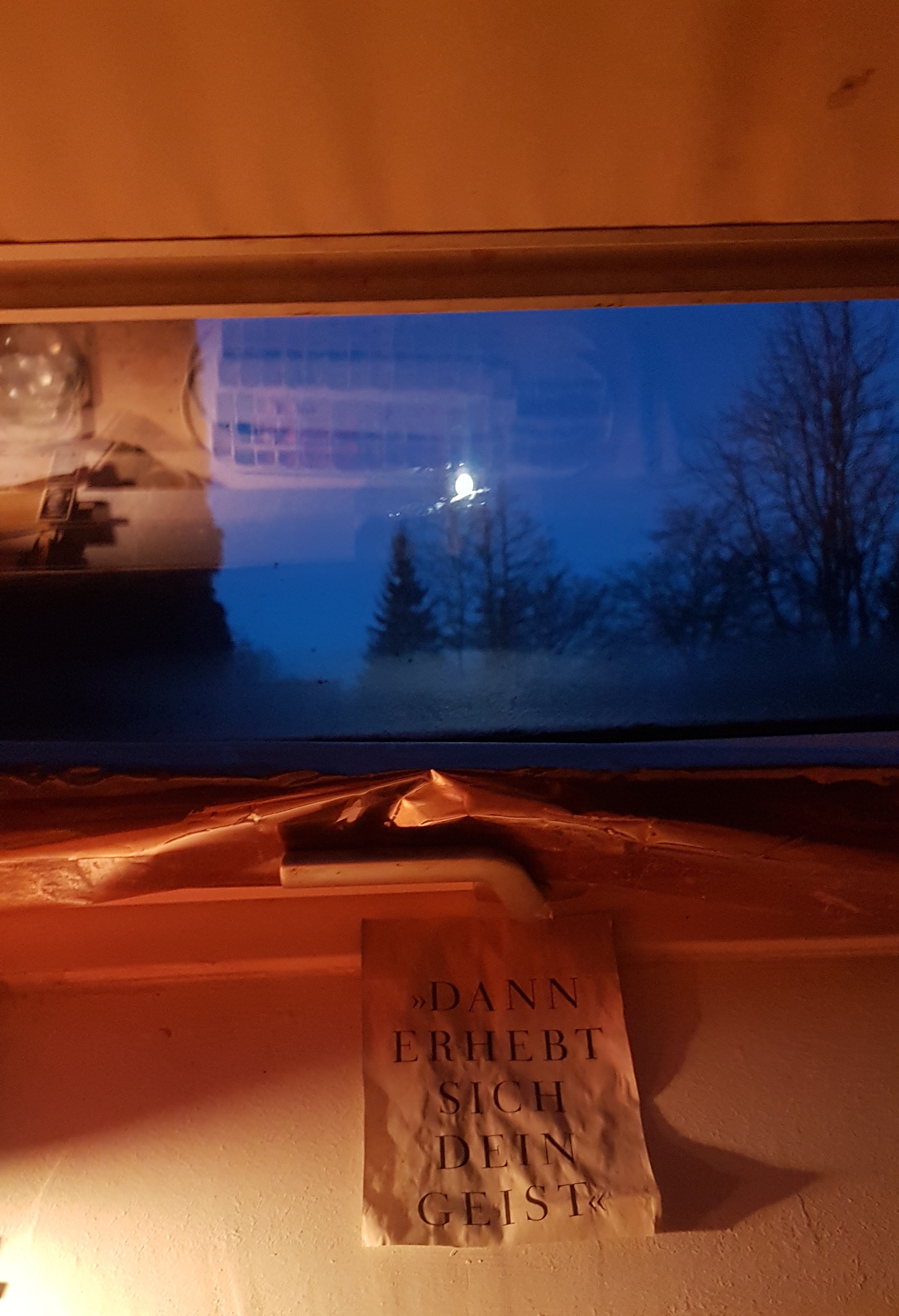 Dann erhebt sich dein Geist, und wann kann das geschehen, dass mein Geist sich erhebt, und von wo aus hebt er sich hin, ja wohin? Oder antwortet da einfach was auf mein Hineinhorchen in die Tiefen der reichhaltigen Leere? Oder braucht es nur einen Vogel oder ein prächtiges Staubkorn, um wieder in Einklang zu sein mit dem Urton der zeitlosen Schöpfungsmacht? Da will man doch gerne dabei sein und raus aus der Enge des Körpers, des schwerwiegenden Hauses, im Inneren und im Äußeren der brodelnde Ozean der Sterne. Und nicht gebunden ist die Befreiung von der Ichheit an das Gesetz der Schwere. Dann erhebt es sich: Freiheit des geistigen Raumes!